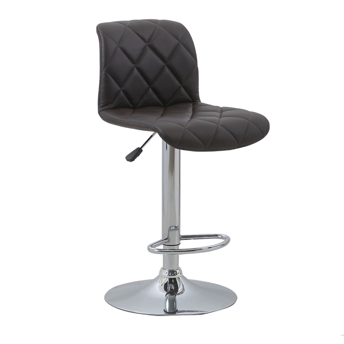 Añade un aire de sofisticación urbana a tu barra con esta pieza que domina el equilibrio entre el lujo clásico y la funcionalidad moderna. Banco alto tipo bar con asiento acolchonado en tono chocolate y base metálica cromada con sistema de ajuste de altura y reposapiés integrado, diseño moderno ideal para barras de cocina o espacios contemporáneos.