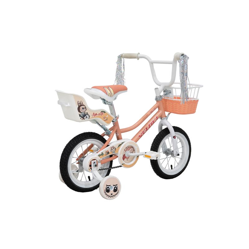 Accesorios: Cubrecadena de plástico alta resistencia, ruedas estabilizadoras de entrenamiento, canastilla delantera, motitas y porta muñecas.