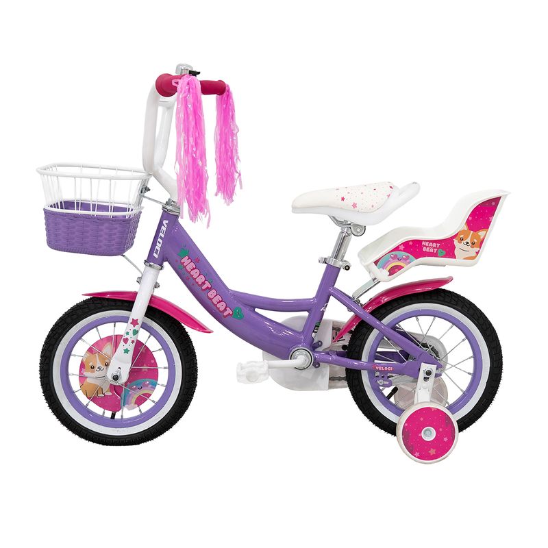Accesorios: Cubrecadena de plástico alta resistencia, ruedas estabilizadoras de entrenamiento, canastilla delantera, motitas y porta muñecas