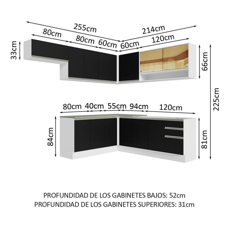 52 cm en los gabinetes bajos y 31 cm en los aéreos