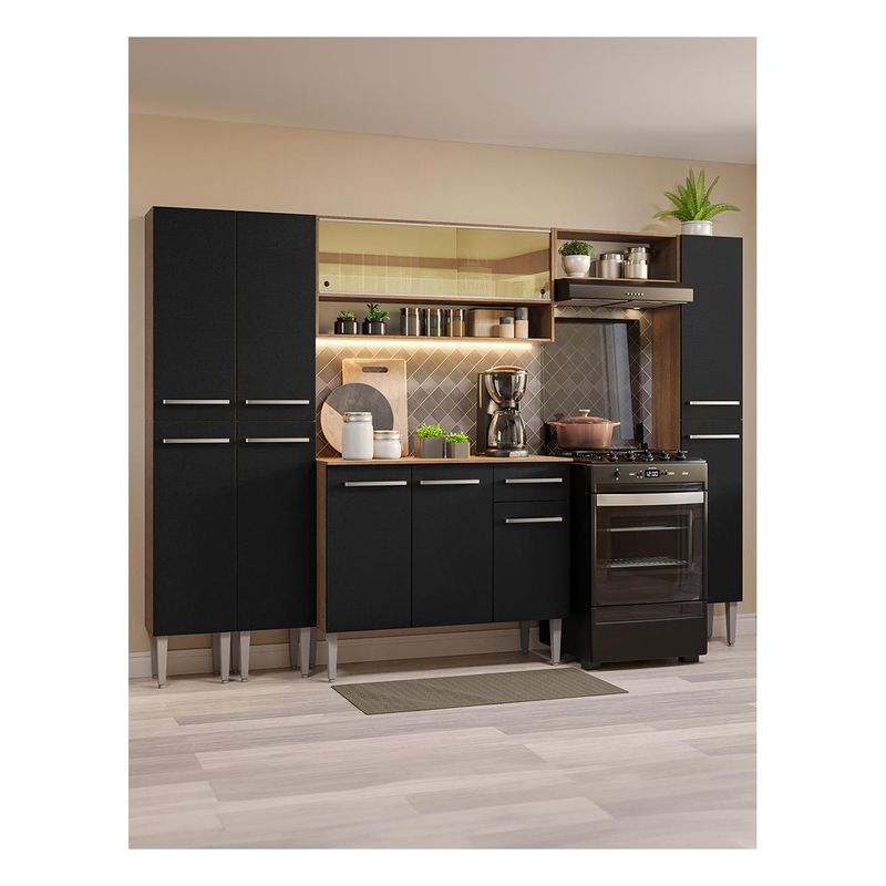 Y pensando en la durabilidad, los muebles están fabricados con materiales de alta calidad. Cuenta con correderas y bisagras metálicas, tiradores de aluminio y pies regulables de PVC, detalles que garantizan mayor resistencia.