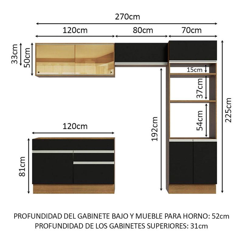 - 52 cm de fondo en el Gabinete bajo y la torre y 31 cm en el techo