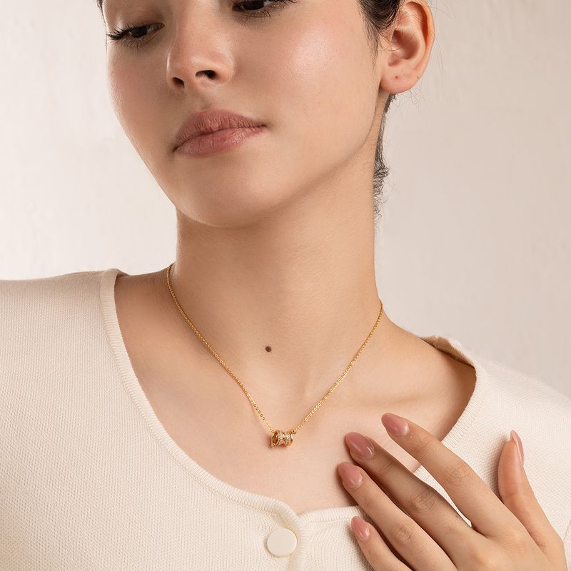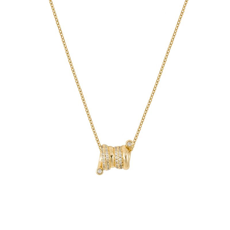 Un destello de tu personalidad única. Collar barril tipo chunky con detalle de zirconia blanca elaborado en chapa de oro 18K.