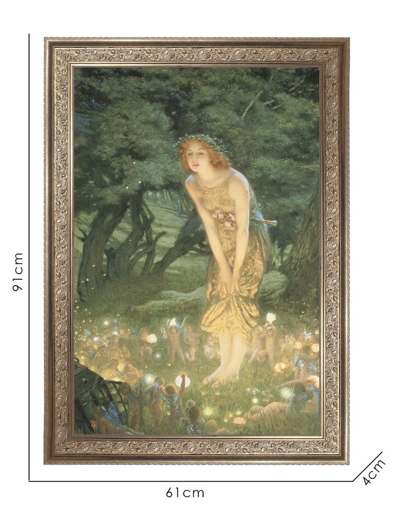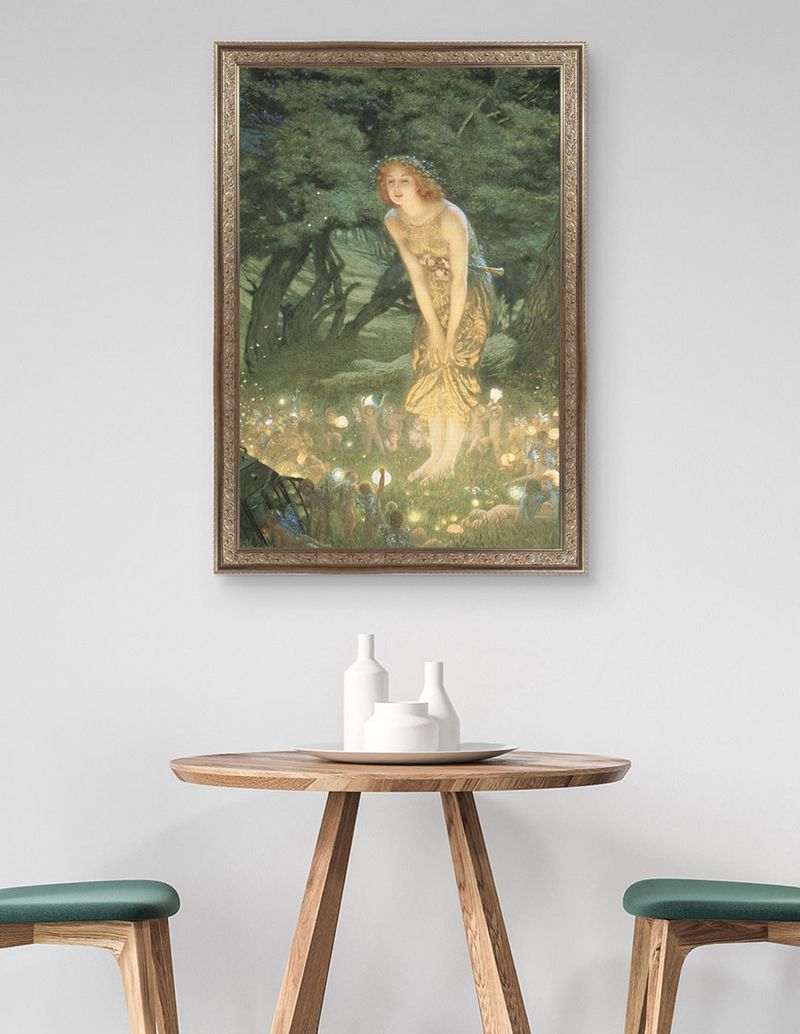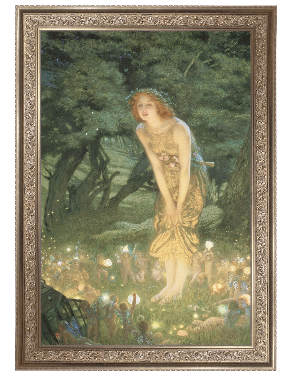 Víspera de verano (Midsummer Eve) enciende un crepúsculo estival en lavandas y dorados. La brisa nocturna parece danzar entre las pinceladas, mientras el murmullo de los grillos late en la penumbra suspendida. Hughes convierte este instante en un poema visual donde la luz y la sombra se entrelazan con delicadeza.