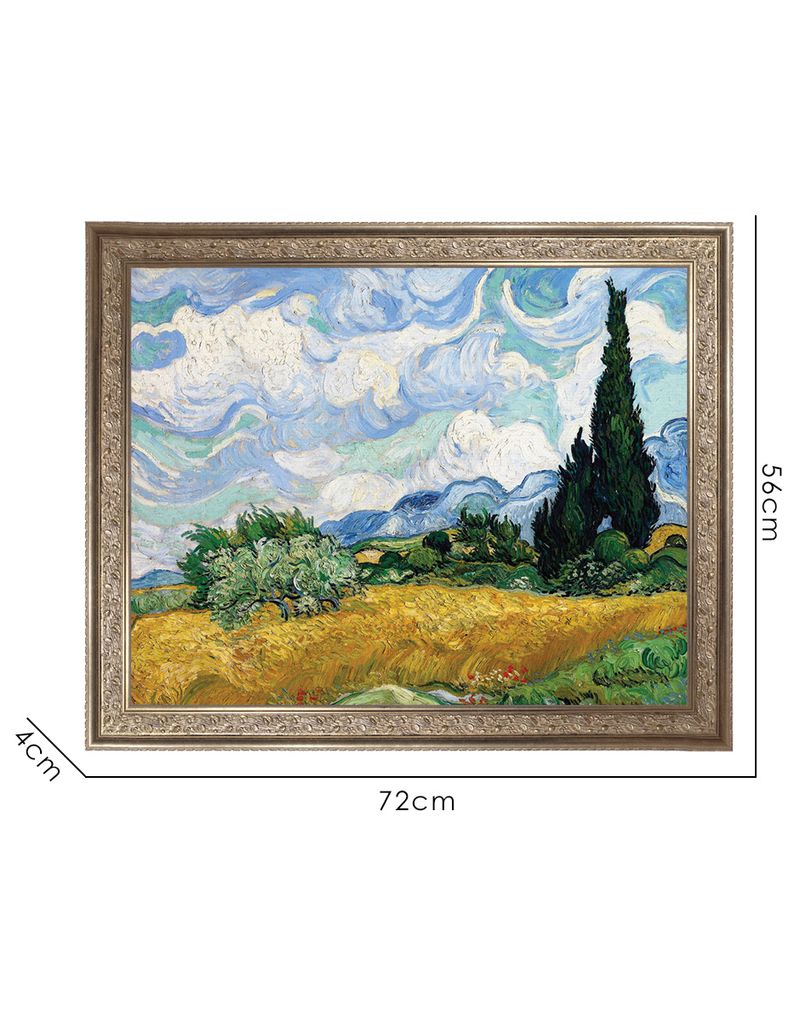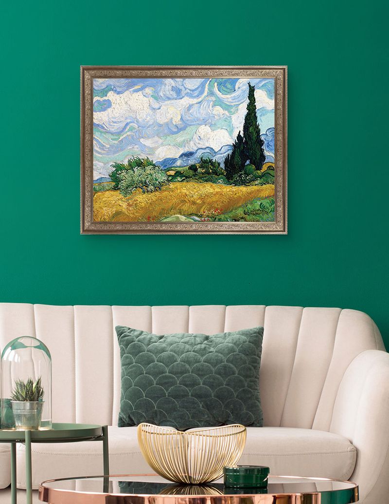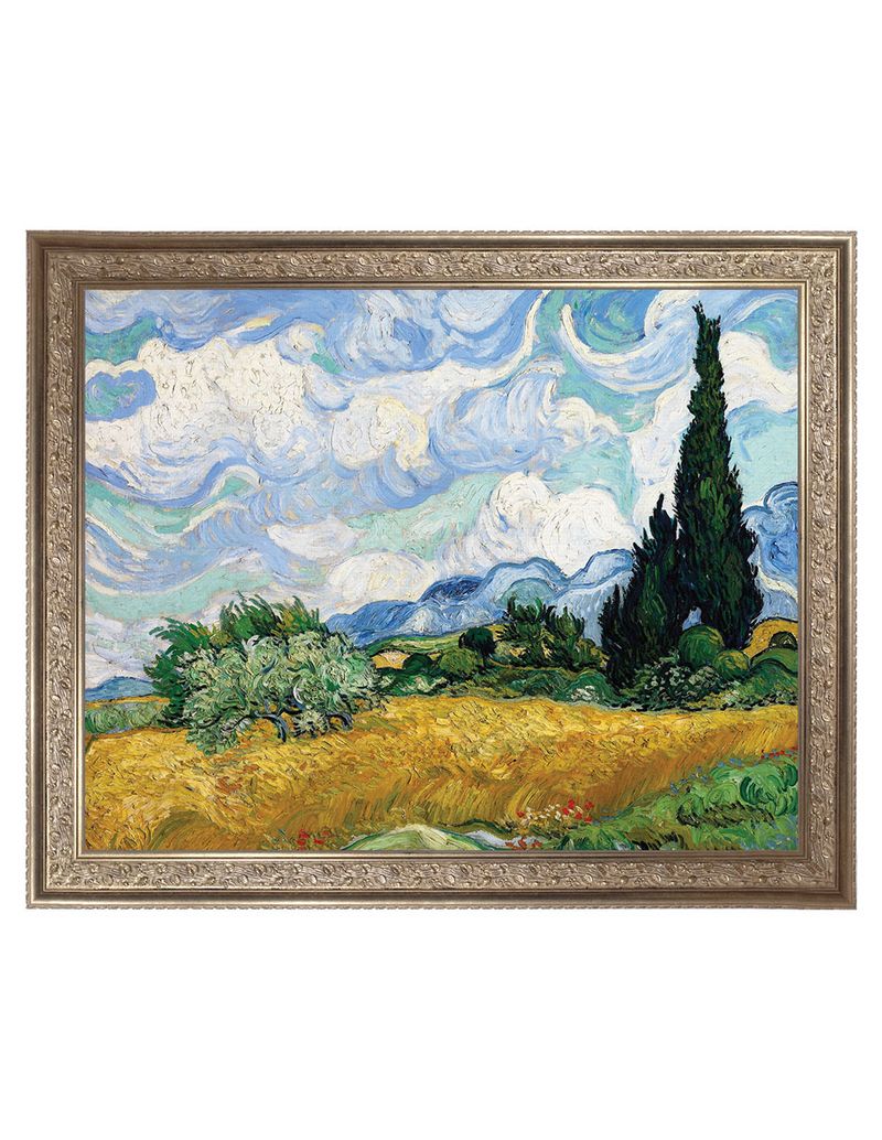 Trigo amarillo y cipreses (Yellow Wheat and Cypresses), con perfil Premier de acabado Cobre cepillado, dibuja un trigal dorado y cipreses erguidos bajo un cielo vibrante, transmitiendo la fuerza emotiva del paisaje provenzal.