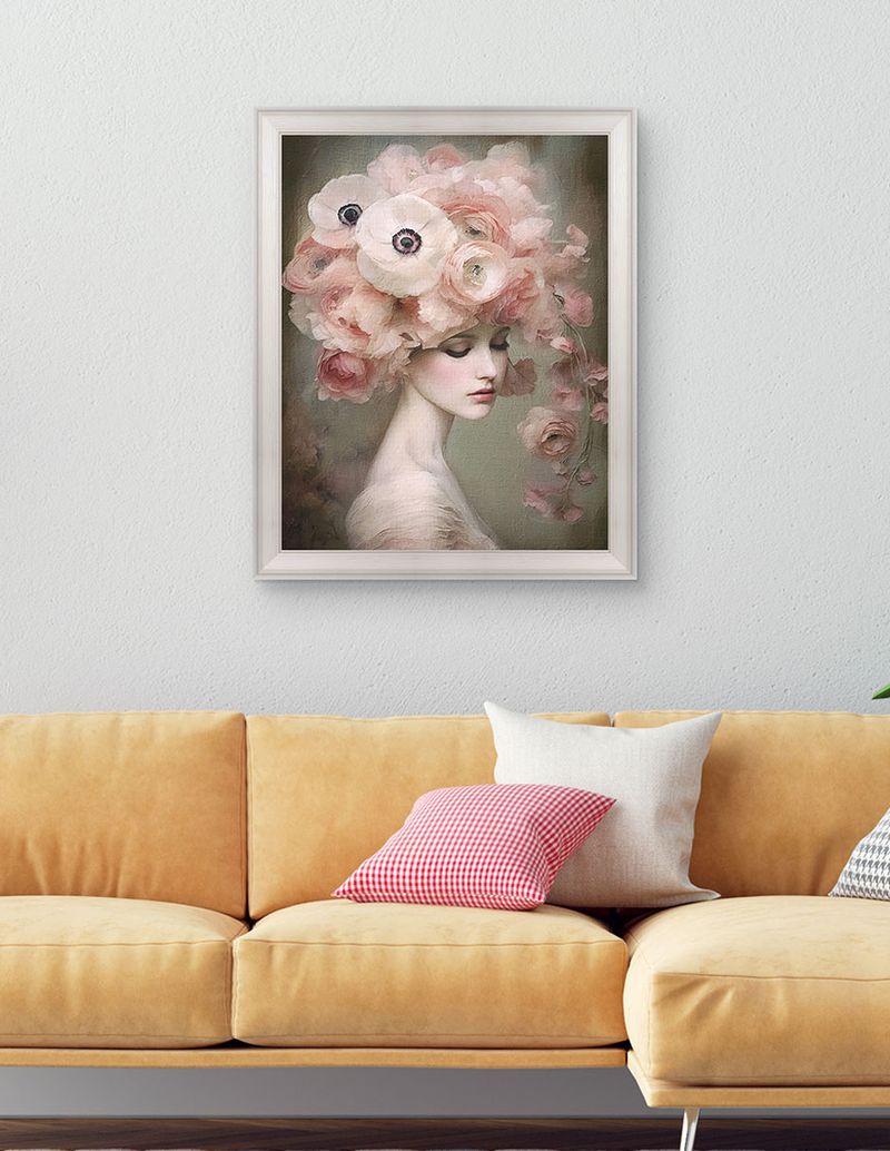 Impreso en lienzo de mezcla de poliéster de alta calidad y protegido con recubrimiento Crystex, este ejemplar preserva la fidelidad de los tonos y resiste el polvo y la decoloración a lo largo del tiempo. Su paleta delicada aporta calidez y serenidad a cualquier espacio.