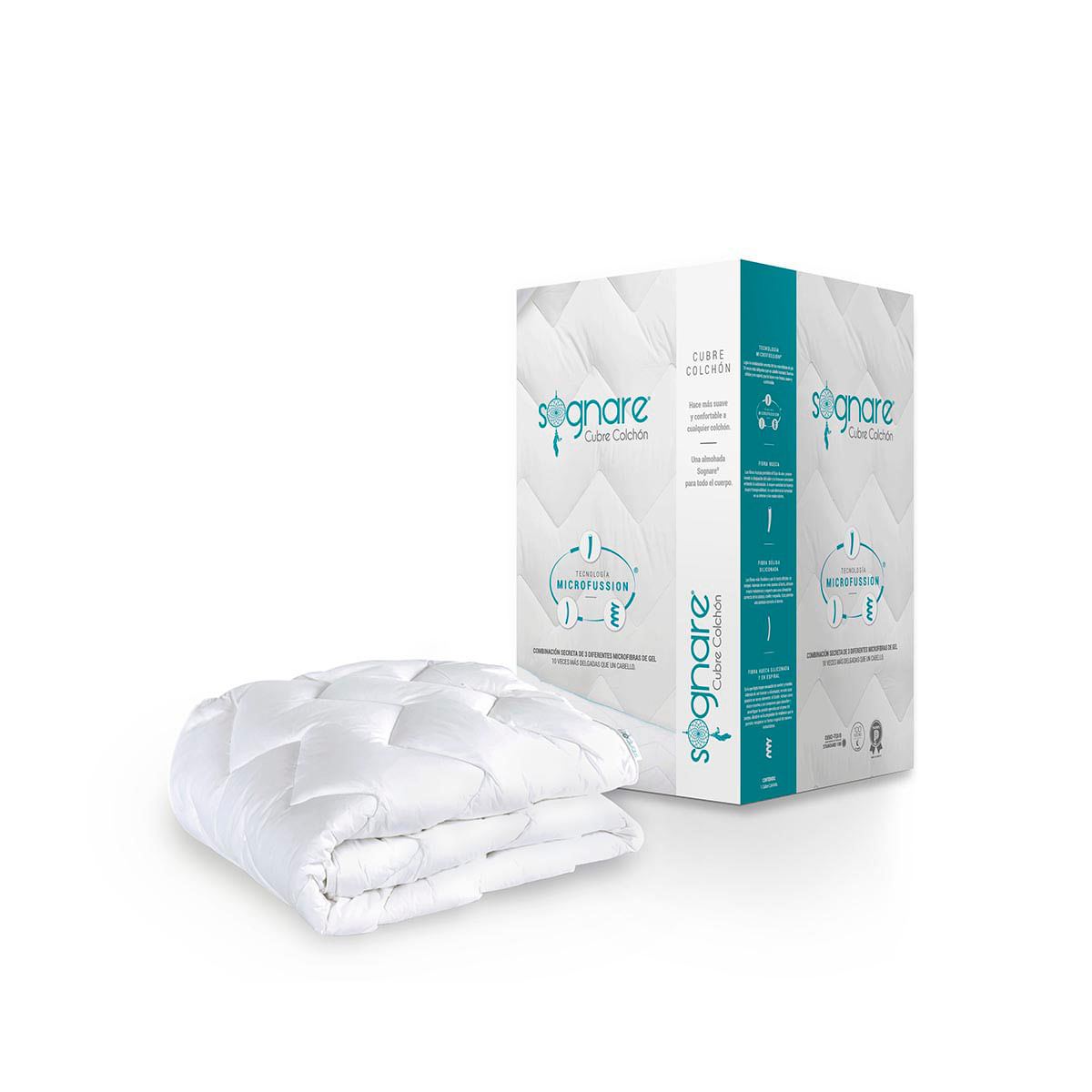 Maximiza tu colchón con el original Cubrecolchón Sognare, el 1ero en México, ya que es como una almohada Sognare® para todo el cuerpo, que hace más suave y confortable a cualquier colchón. Tecnología ZERO GRAVITY®: Distribuye el peso y evita puntos de presión. Tecnología MICROFUSSION®: combinación secreta de tres microfibras de gel 10 véces más delgadas que un cabello. Costuras Zig zag: permiten el libre paso del aire para mantenerlo fresco. Puede puede lavarse y secarse en máquina. Tela 100% algodón, hipoalergénico y lavable. Resistente y durable. No genera pelusa (pilling).