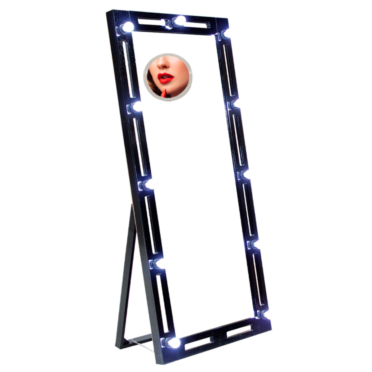 Espejo de cuerpo completo con un elegante marco en color chocolate, diseñado para aportar un toque moderno y sofisticado a cualquier espacio. Este espejo cuenta con focos LED estratégicamente distribuidos alrededor, que no solo iluminan tu reflejo de manera perfecta, sino que también crean un ambiente acogedor y glamuroso, similar al de un camerino profesional. Su soporte firme y funcional garantiza estabilidad y versatilidad, permitiéndote colocarlo en diferentes áreas de tu hogar, ya sea en el dormitorio, el vestidor o la sala de estar. Dale un giro a tu decoración y disfruta de la combinación de estilo y practicidad que este espejo ofrece.