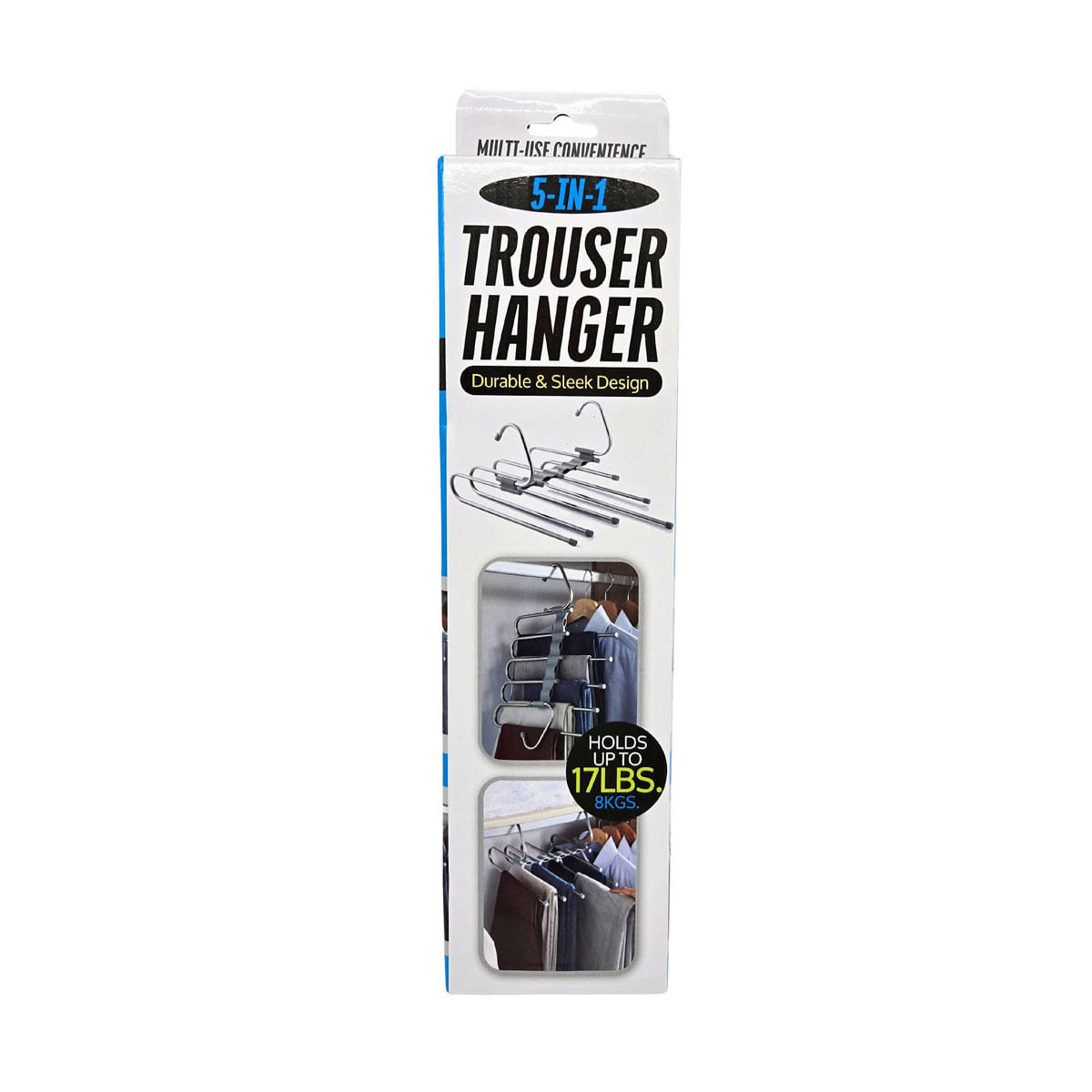 El organizador de armario ahorrador de espacio con perchas para pantalones es la solución perfecta para maximizar el espacio y mantener el orden en tu armario. Con un ingenioso diseño 5 en 1, permite colgar hasta 5 pantalones y se puede utilizar tanto en posición horizontal (23 x 24 x 18 cm) como vertical (23 x 2,5 x 44 cm), adaptándose a tus necesidades. Fabricado con materiales resistentes, este organizador evita que las prendas se doblen, siendo ideal también para bufandas, corbatas o toallas. Su diseño compacto y versátil lo convierte en un accesorio esencial para cualquier hogar que busque optimizar su almacenamiento.