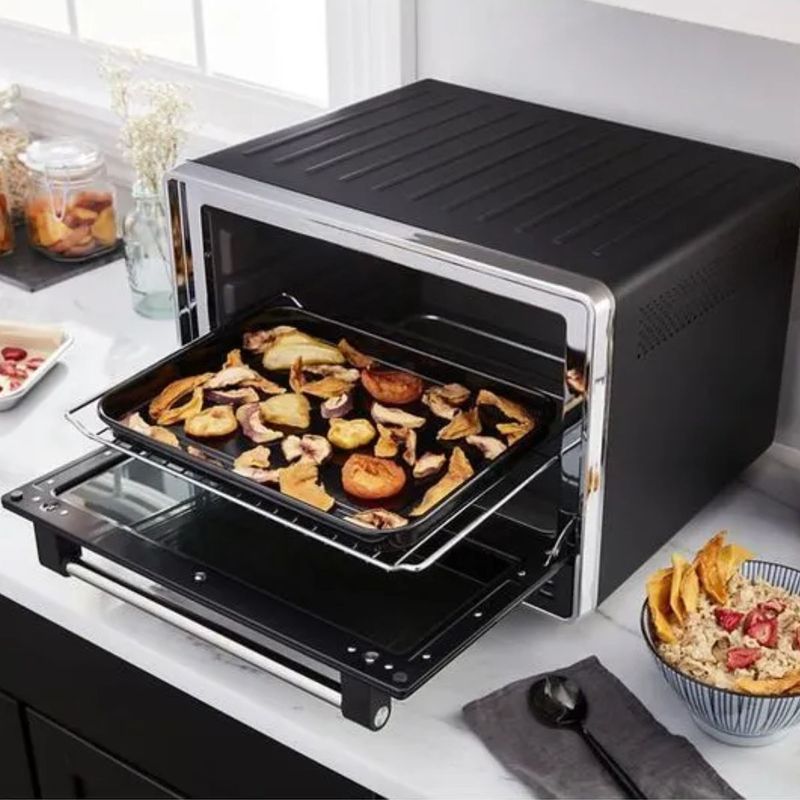 El Horno de Mesa de Doble Convección con Freidora de Aire y Sonda de Temperatura diseñado para ofrecer infinitas posibilidades saludables y frescas. Incluye: canasta para freír con aire No-Flip y sonda de temperatura integrada.