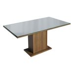 - Una (1) Mesa rectangular con base de pedestal, encimera de MDP y encimera de vidrio