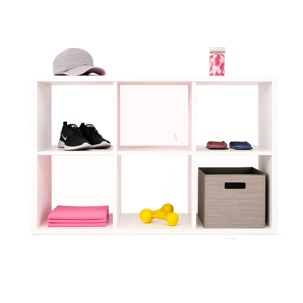 Librero organizador de seis compartimentos abiertos, diseñada con un elegante acabado en blanco que se adapta a cualquier estilo de decoración. Este mueble versátil es perfecto para mantener en orden ropa, accesorios, juguetes o cajas decorativas, brindando un espacio funcional y estético en tu hogar. Su diseño moderno no solo optimiza el almacenamiento, sino que también añade un toque de frescura y luminosidad a cualquier habitación. Podrás disfrutar de un ambiente más organizado y acogedor, facilitando el acceso a tus objetos favoritos mientras realzas la belleza de tu espacio. NO INCLUYE ACCESORIO, IMAGEN SOLO ILUSTRATIVA