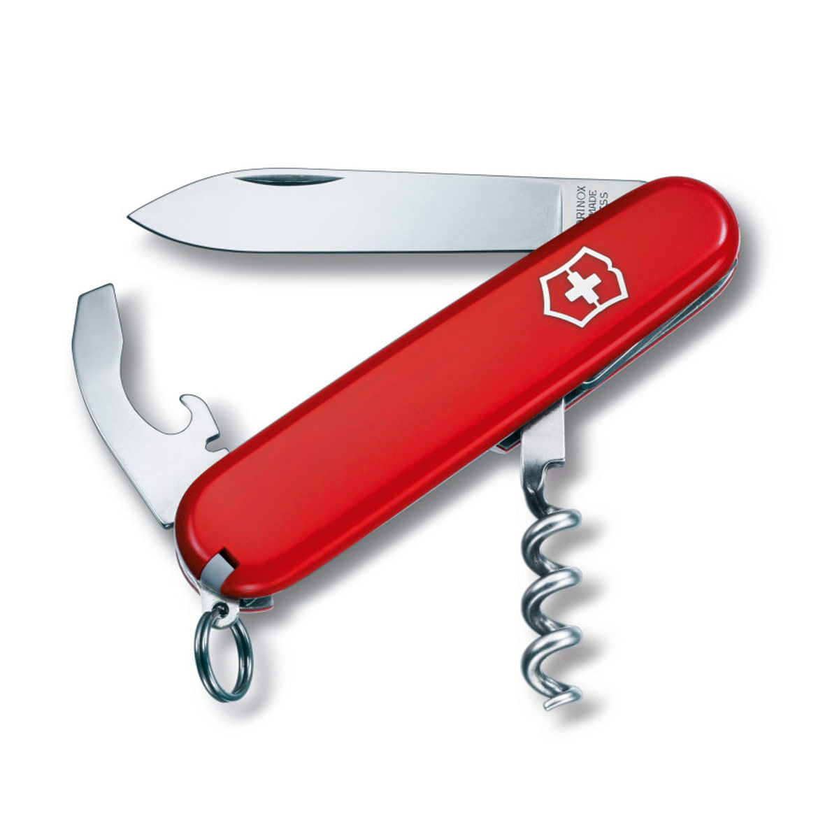 7 Funciones: Hoja grande, sacacorchos, destapador, abrelatas, destornillador 5 mm, pela cables, anilla, palillo de dientes, pinzas.
