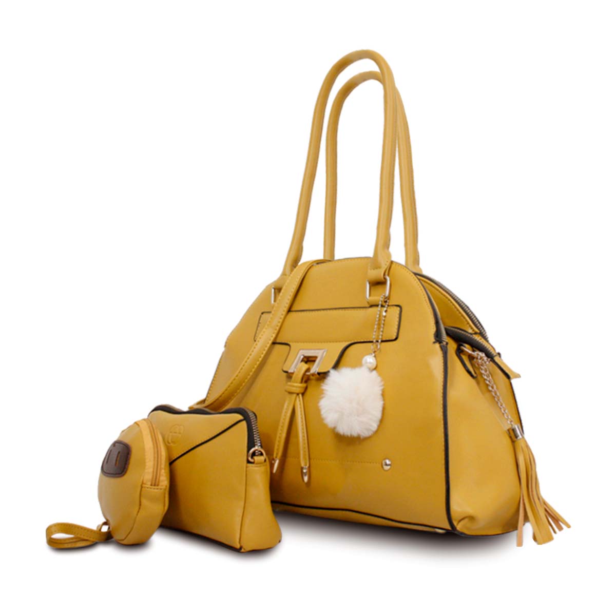 Set de 3 piezas para dama Bolso, cosmetiquera y monedero. El bolso cuenta con compartimento principal asas de mano y correa ajustable para llevar al hombro, 1 bolsillo frontal y 2 bolsillos trasero con cierre. En su interior cuenta con un bolsillo con cierre y 2 bolsillos organizadores, 2 accesorios para decoración. Cosmetiquera y monedero solo cuentan con compartimento principal y aditamento compartido para llevar en mano Fabricado en Vinipiel