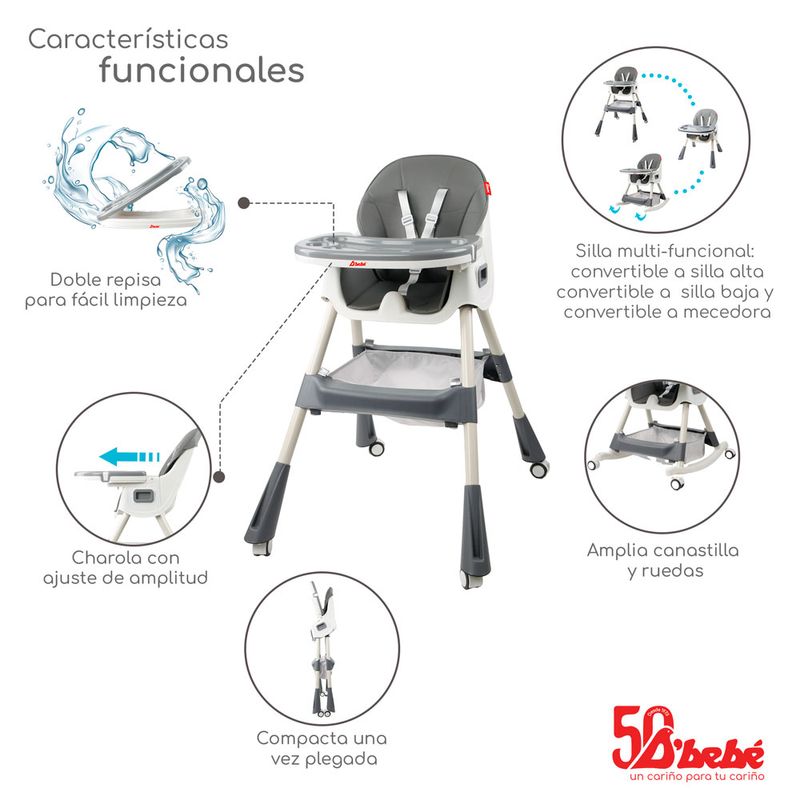 Silla alta 3 en 1 Dbebé eat & rock gris